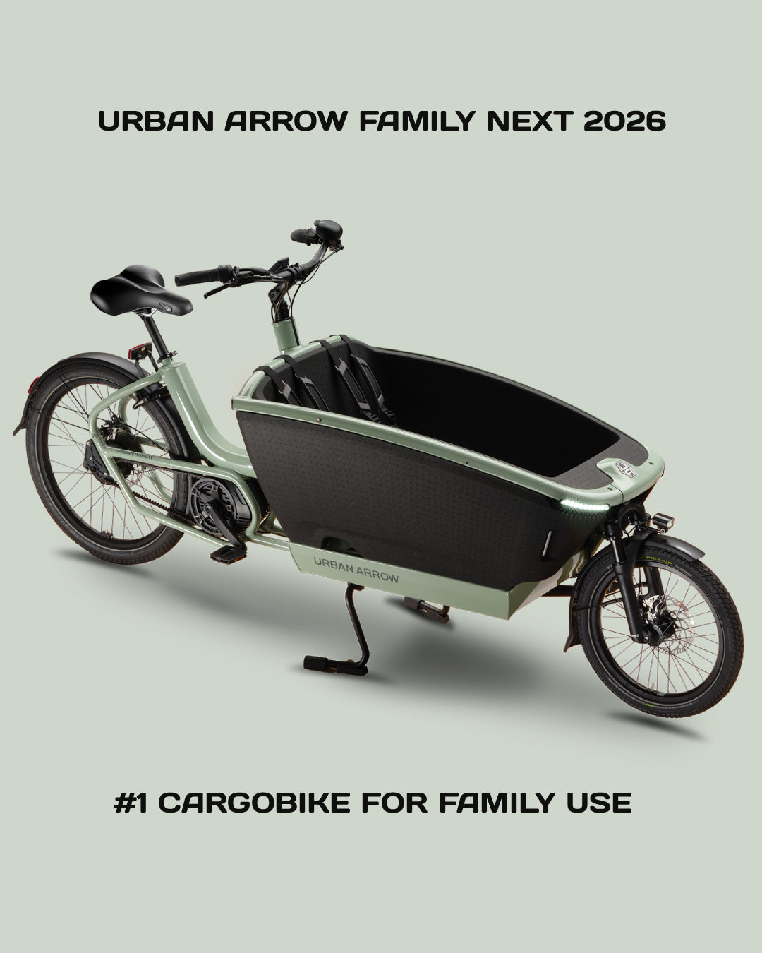 The new Urban Arrow offers extra comfort thanks to a suspension front fork that effortlessly absorbs shocks and bumps. The redesigned, taller box provides more protection and space, making it even safer and more stable to transport children or cargo.